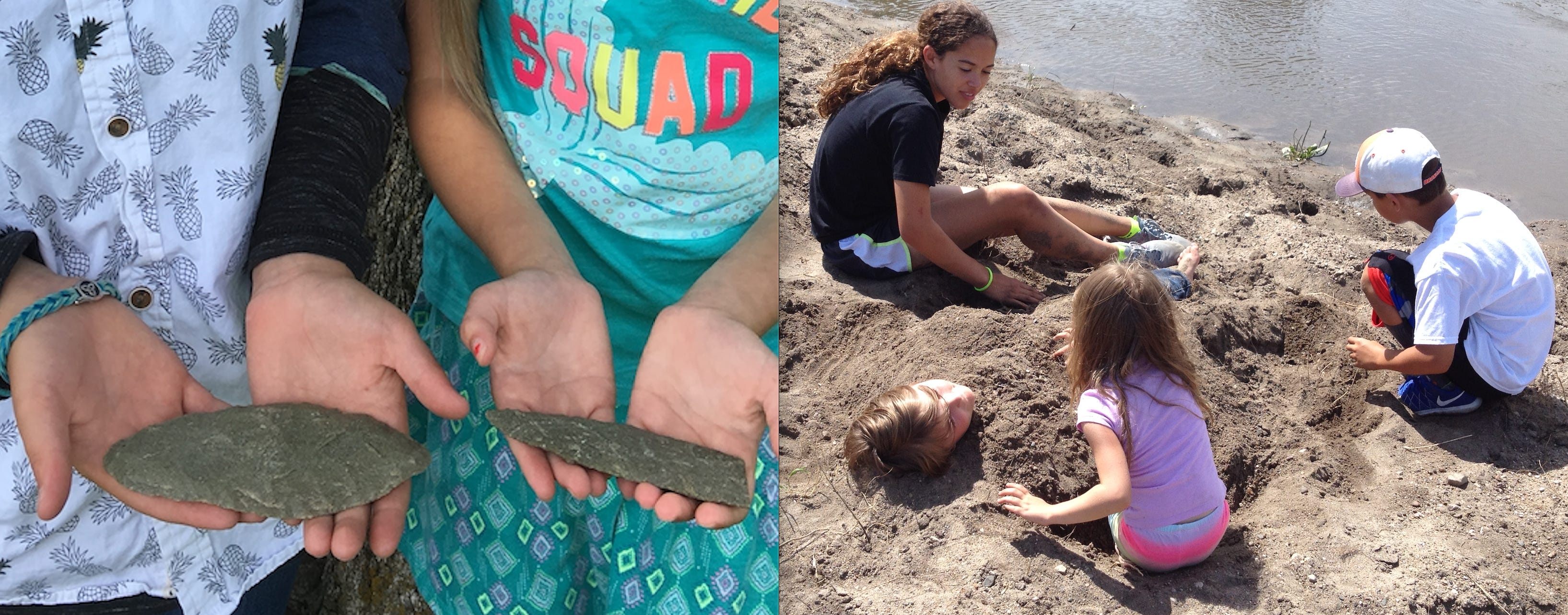 Figure 6----Grandchildren on Bar C. A) Distinctive blades found by the kids who are holding them. B) All four of our grandchildren playing in the sand when they were much younger.